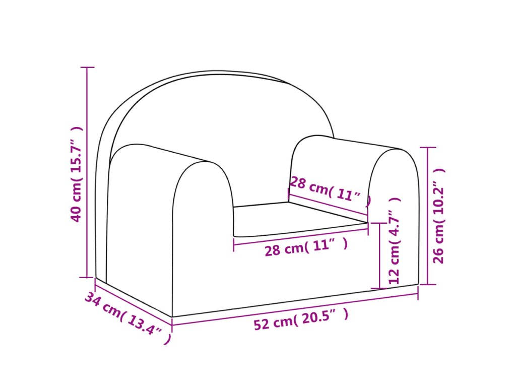 - Měkké a pohodlné posezení: Dětský gauč je vyplněn hustou pěnou, takže je mimořádně měkký a pohodlný. Opěradlo a široké područky navíc poskytují výtečnou oporu.
