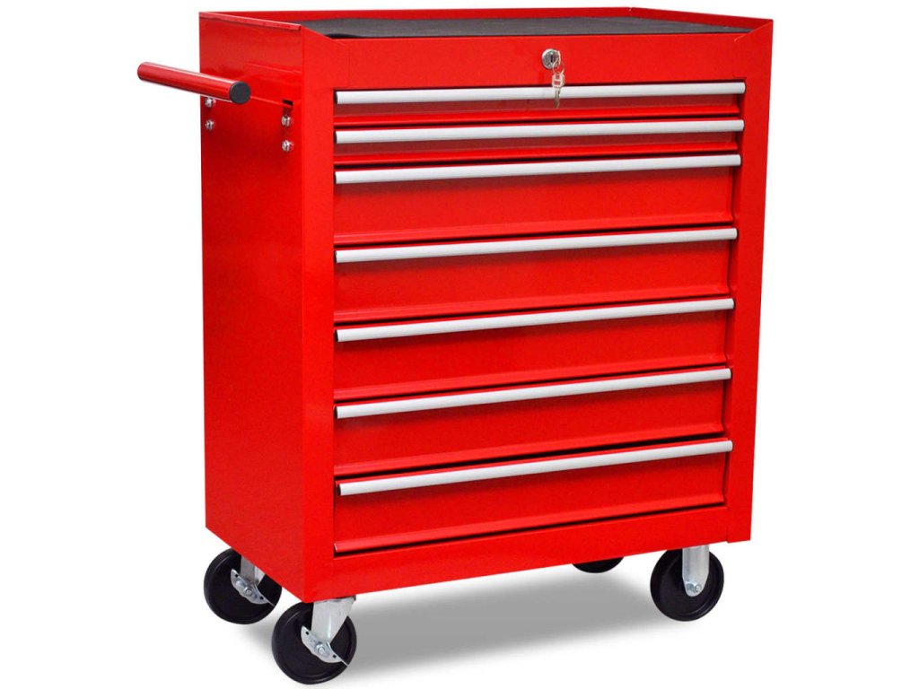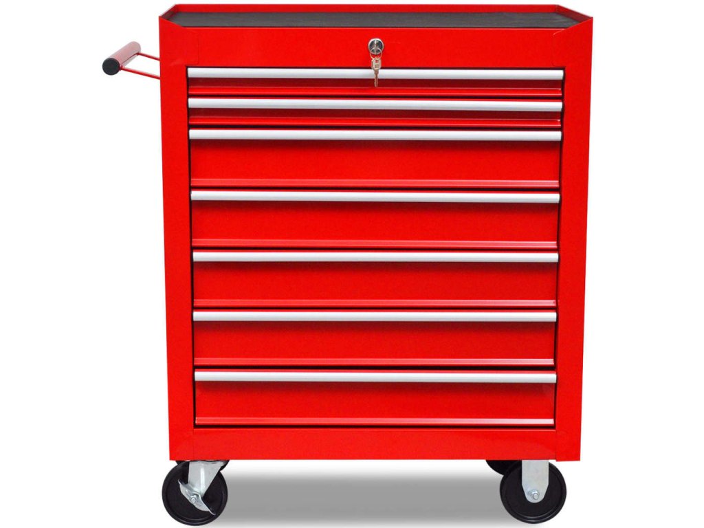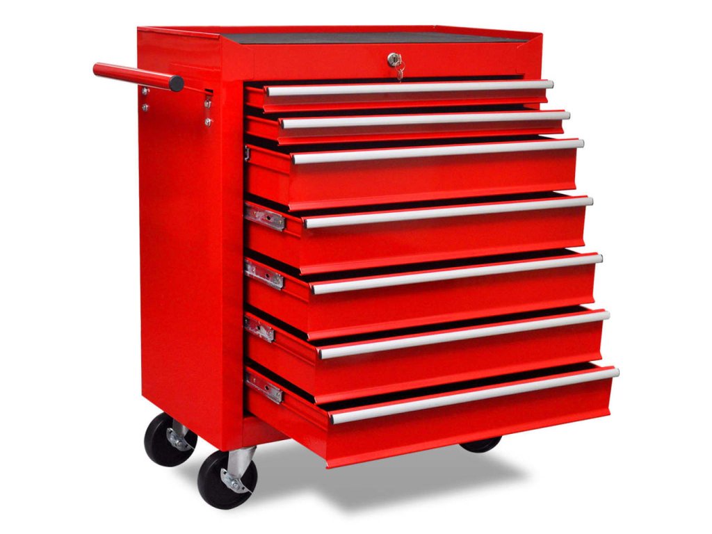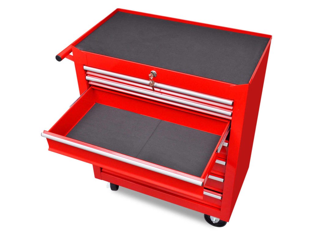 Červený dílenský vozík na nářadí 7 zásuvek 141955