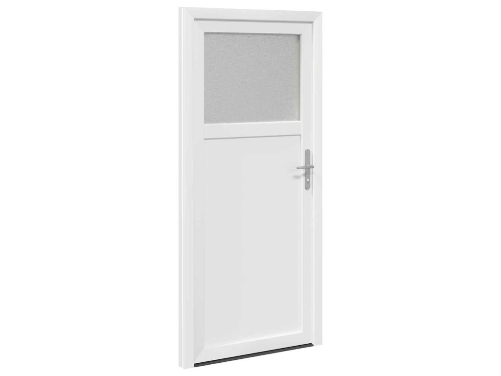 Tyhle moderní boční vchodové dveře spojí čisté linie a minimalistický styl a jsou skvělou vstupní bránou do každého domu nebo komerční budovy. Vyrobené z PVC, zaručují trvalou ochranu. Jejich nenápadná elegance se hodí do moderních interiérů a dodává funkčnost i estetickou hodnotu. Perfektní pro ty, co hledají stylové a bezpečné dveře do obývacích pokojů a vestibulů.