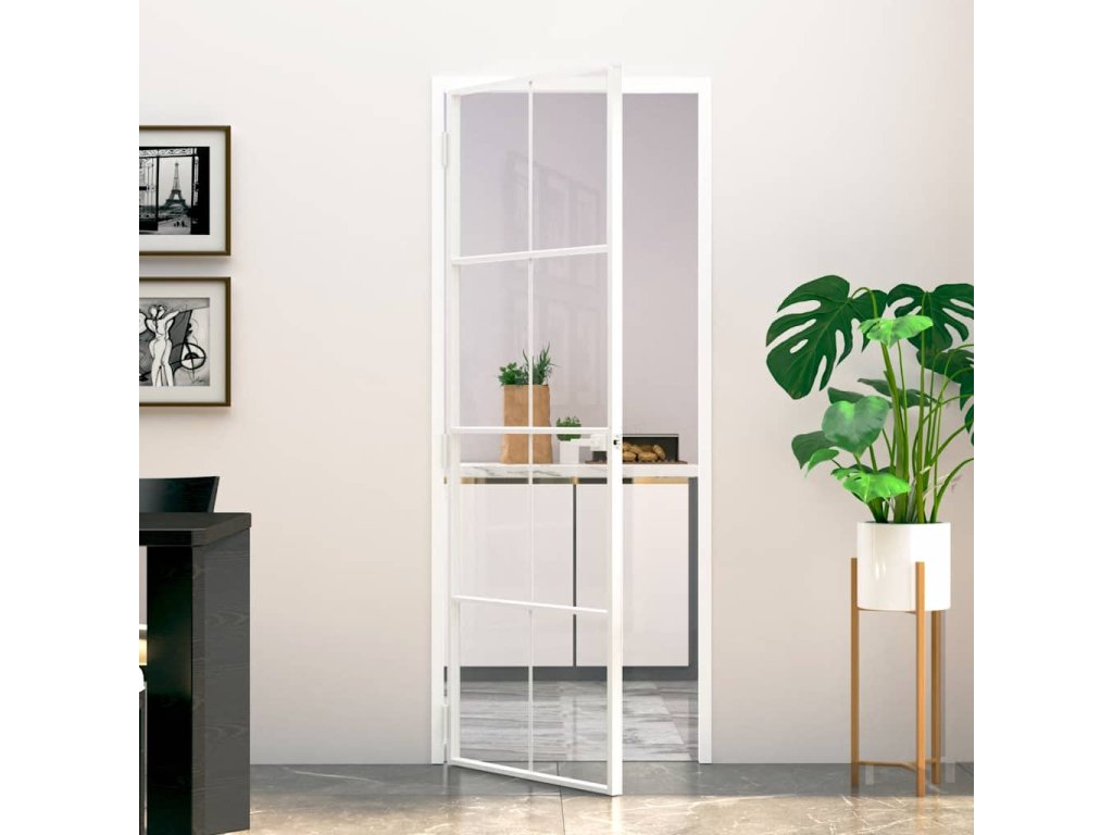 Interiérové dveře bílé 76x201,5 cm tvrzené sklo a hliník úzké 153670
