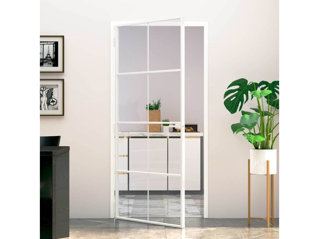 Interiérové dveře bílé 93x201,5 cm tvrzené sklo a hliník úzké 153672