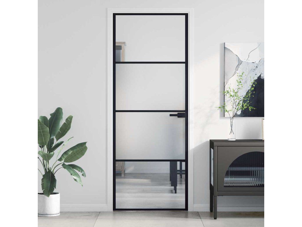 Interiérové dveře úzké černé 76x201,5 cm tvrzené sklo a hliník 155116