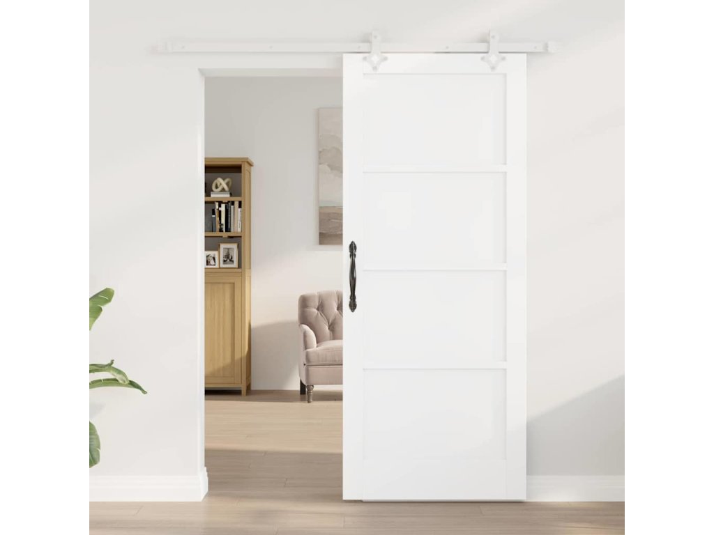 Posuvné Dveře Bílá 83 x 202 cm Masivní borové dřevo a ocel 3333561