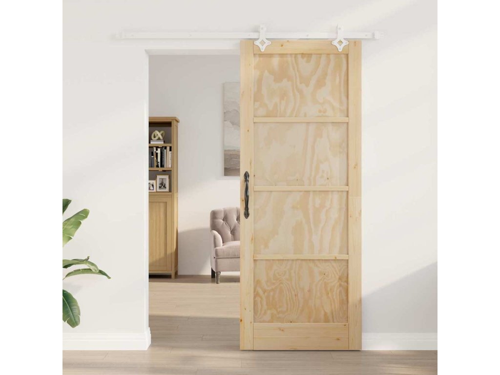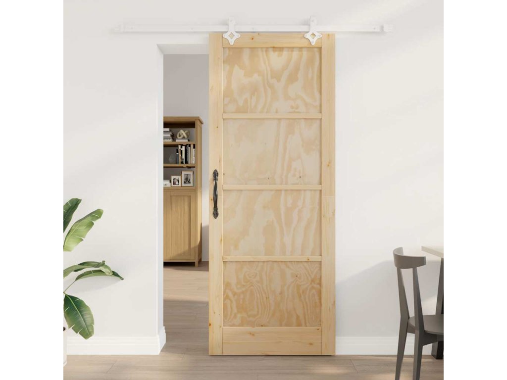 Posuvné Dveře Bílá 83 x 211 cm Masivní borové dřevo a ocel 3333562