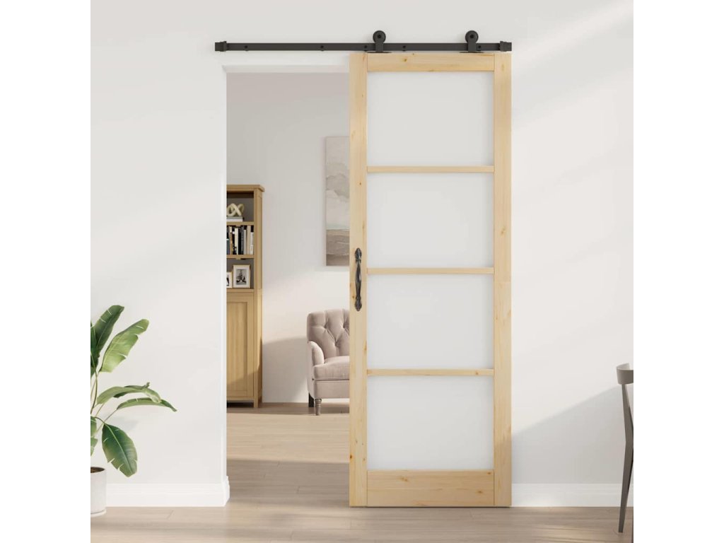 Tyto moderní posuvné dveře mixují jednoduchost a funkčnost, jsou vyrobené z masivního borového dřeva a skla. Skvělý pro vnitřní použití, jejich minimalistický vzhled a čisté linie dělají z těchto dveří ideální volbu pro jídelny a obývací prostory, perfektně rozdělí místnosti a nechají světlo volně proudit.