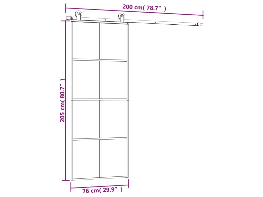 Posuvné dveře s kováním 76x205 cm ESG sklo a hliník 3152140