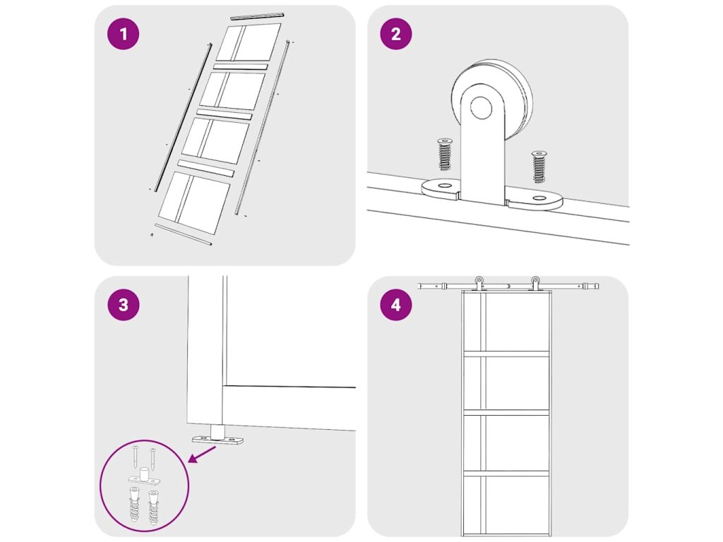 - Způsob instalace je vysvětlen v našem instalačním manuálu ke dveřím a sadám příslušenství.