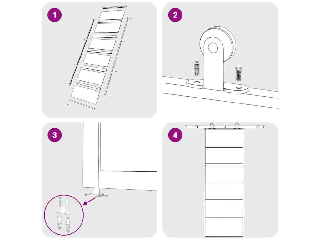 - Způsob instalace je vysvětlen v našem instalačním manuálu ke dveřím a sadám příslušenství.