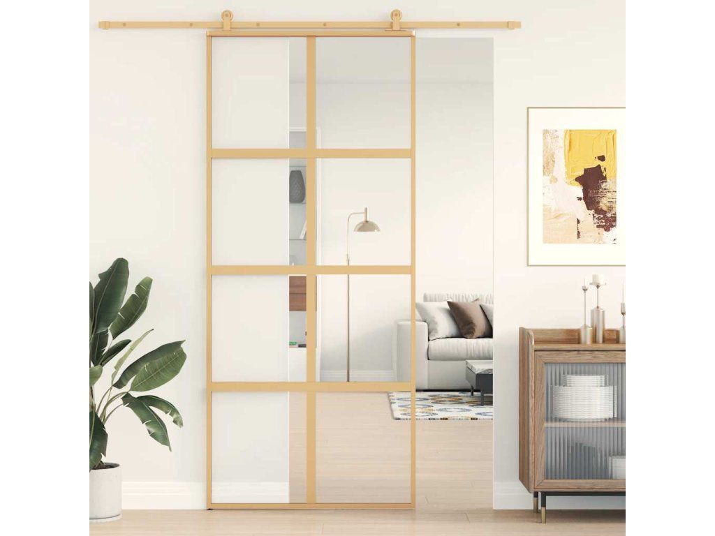 Posuvné dveře zlaté 90 x 205 cm čiré ESG sklo a hliník 155185
