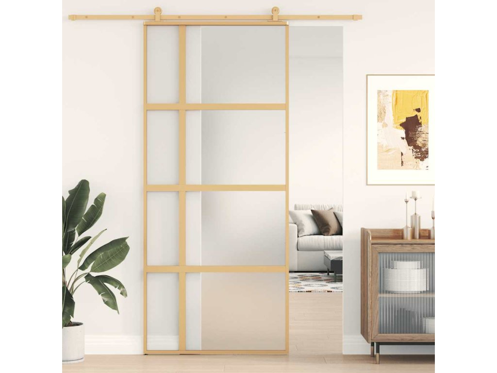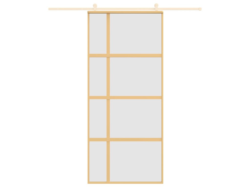 Posuvné dveře zlaté 90 x 205 cm mléčné ESG sklo a hliník 155194