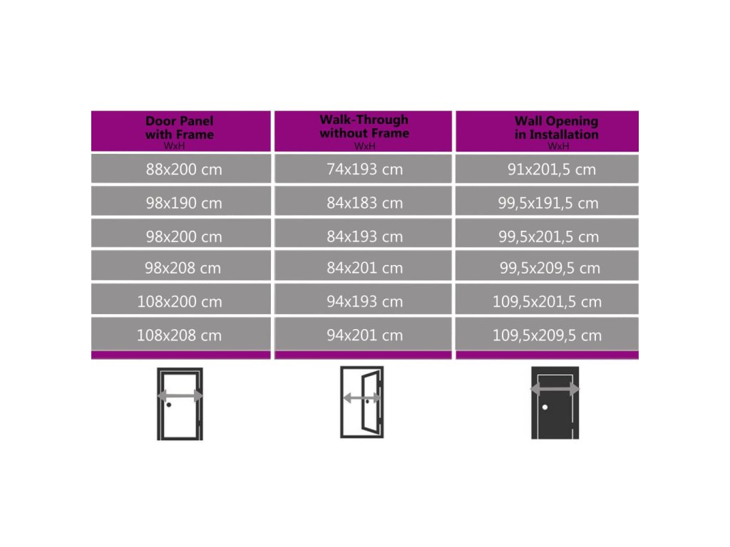 - Tloušťka profilu rámu a křídla dveří: 70 mm