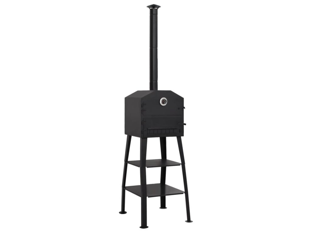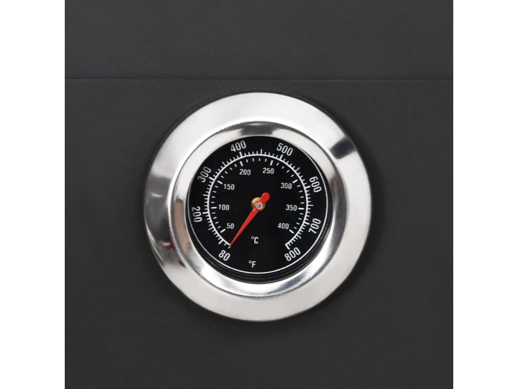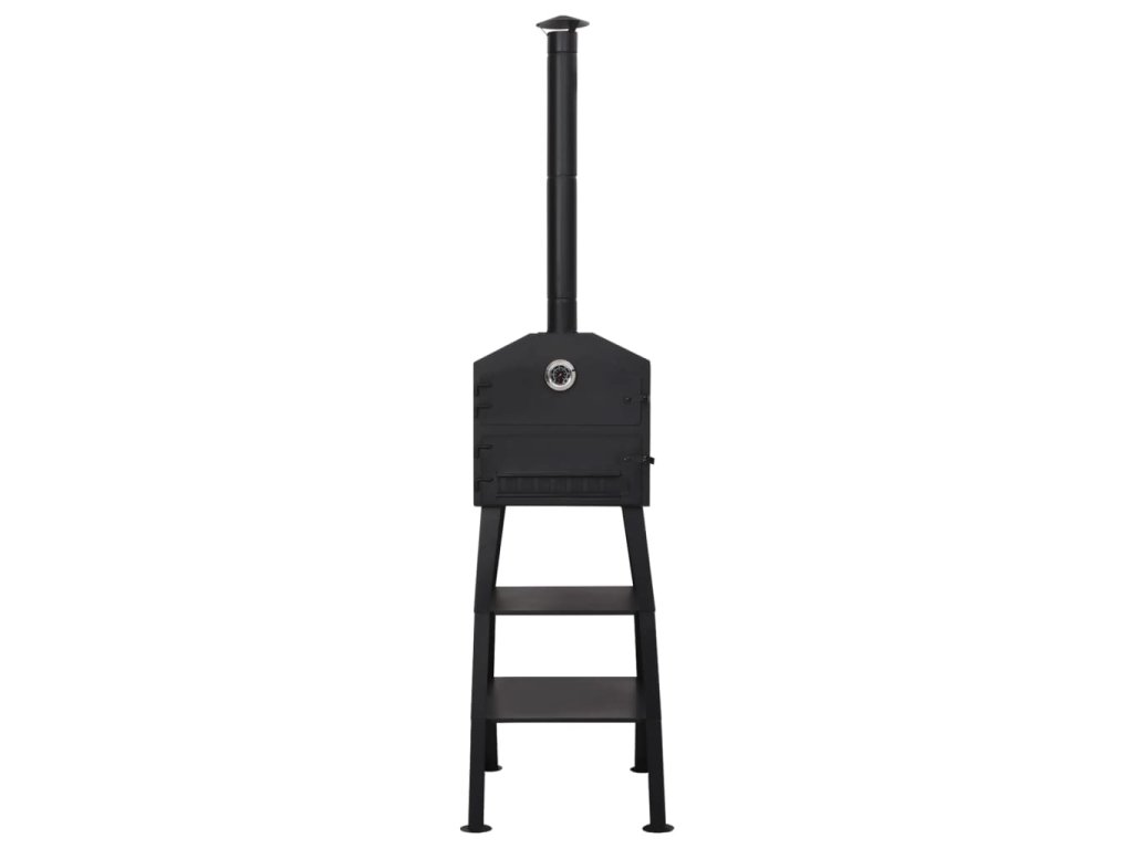 Tato samostatně stojící pec je vhodná pro všechny typy dřevěného uhlí. Rošt lze vyjmout pro rychlé a snadné čištění. Horní část je určená pro pečení. Ve spodní části jsou umístěny dvě žáruvzdorné (šamotové) cihly, které rovnoměrně rozvádí teplo do pece a mohou odolat teplotám až 1300 ℃. Cihly také zaručují, že váš pokrm nebude znečištěný poletujícím popelem nebo prachem z ohně. Dvě police nacházející se ve spodní části pece jsou praktické pro uložení ochranných rukavic nebo dalších potřeb. Tato trouba je také vybavena vestavěným teploměrem.