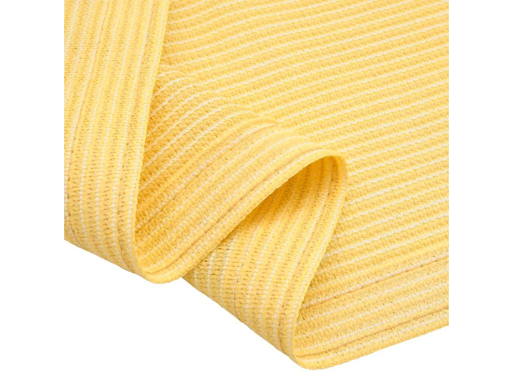 Koberec do stanu je vyrobený z polyethylenu s vysokou hustotou, který je příjemně prodyšný a propouští vodu. V každém ze svých čtyř rohů má zabudované očko a další dvě očka se nachází uprostřed dlouhých stran pro snazší upevnění. Venkovní koberec snadno vyčistíte vodou. A je-li to třeba, můžete ho také lehce seříznout na požadovanou velikost.