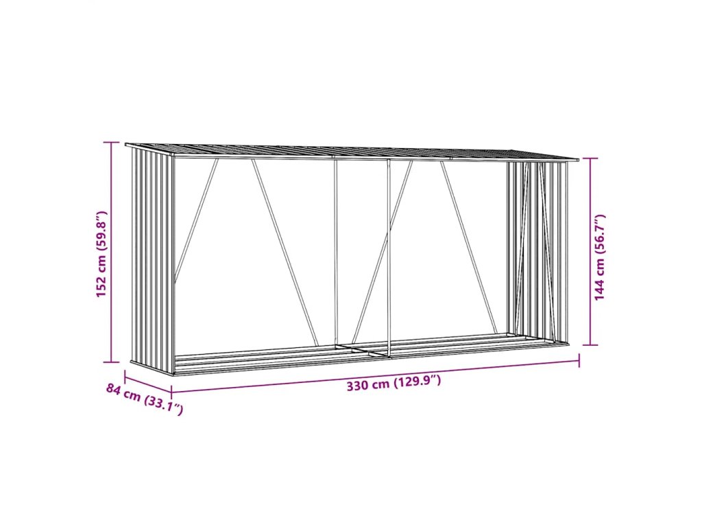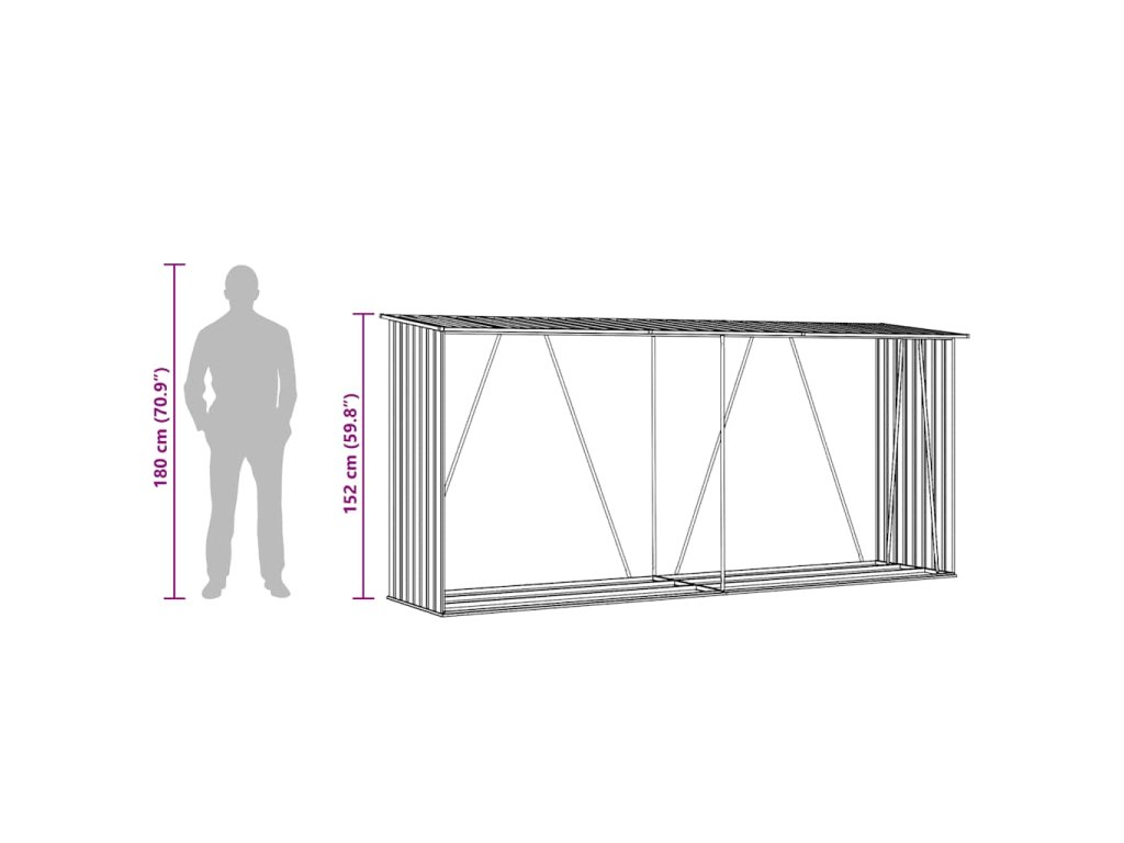 Má stabilní konstrukci s ocelovými nosnými tyčemi a přídavnými trubkami na obou stranách. Díky tomu, že je vyroben z pozinkované oceli, vyžaduje skladovací domek na dřevo minimální údržbu a je velmi odolný. Tento skladovací domek na dřevo má ocelový podlahový rám pro větší stabilitu a zvýšené podlahové latě, které udržují polena větraná a suchá. Dešťová voda bude díky šikmé konstrukci automaticky odváděna ze střechy. Náš skladovací domek na dřevo se snadno montuje.