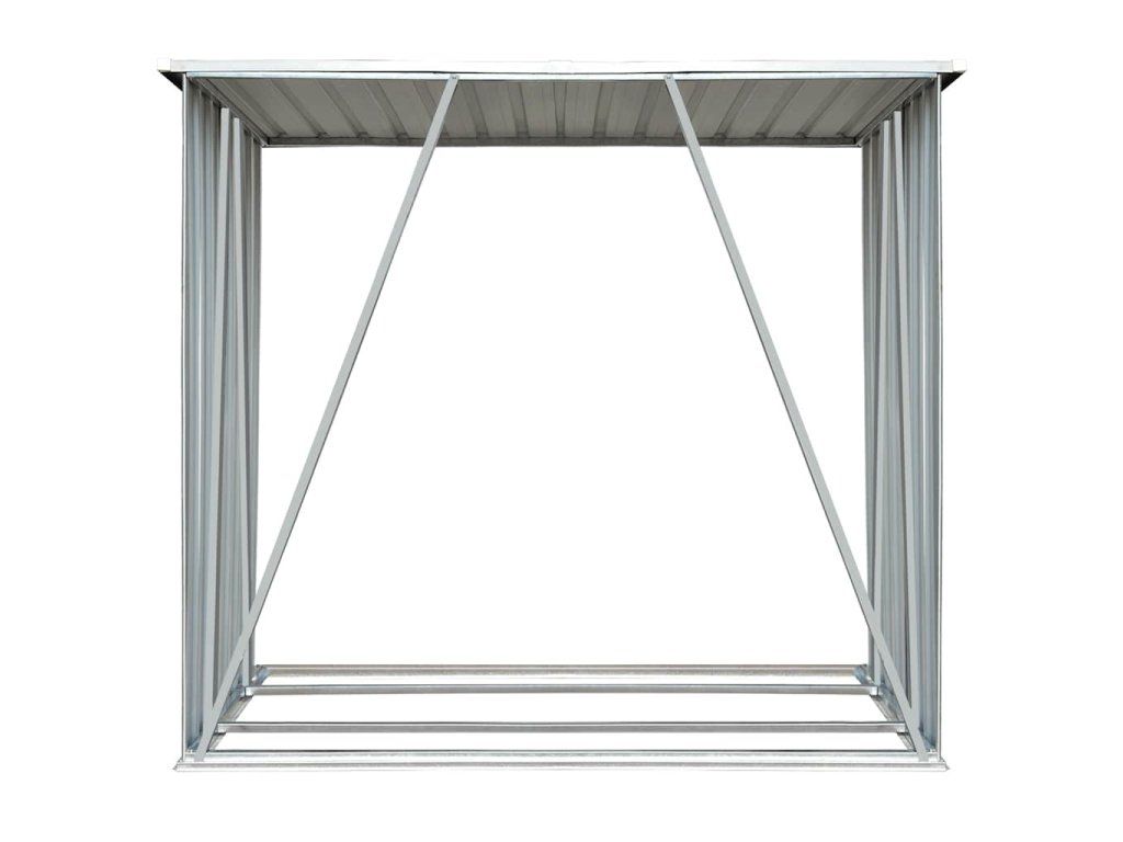 Má stabilní konstrukci s ocelovými nosnými tyčemi a přídavnými trubkami na obou stranách. Díky tomu, že je vyroben z pozinkované oceli, vyžaduje skladovací domek na dřevo minimální údržbu a je velmi odolný. Tento skladovací domek na dřevo má ocelový podlahový rám pro větší stabilitu a zvýšené podlahové latě, které udržují polena větraná a suchá. Dešťová voda bude díky šikmé konstrukci automaticky odváděna ze střechy. Náš skladovací domek na dřevo se snadno montuje.