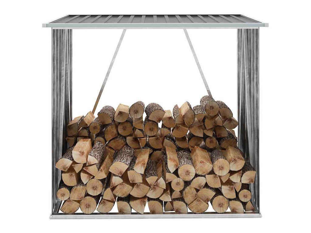 Zahradní kůlna na dříví z pozinkové oceli 163x83x154 cm šedá 44959