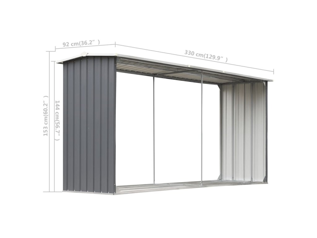 Zahradní kůlna na dříví z pozinkové oceli 330x92x153 cm šedá 44860