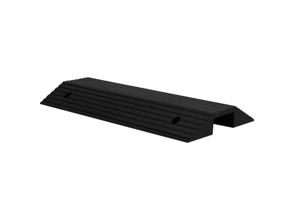 Přejezdová rampa je vyrobena z pevné pryže, je lehká a dostatečně odolná pro dlouhodobé používání. Drsný povrch má protiskluzovou strukturu, která pomáhá zabránit uklouznutí při nájezdu.