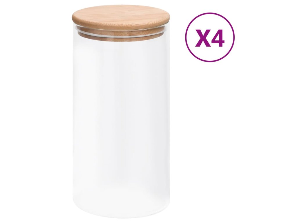 Skleněné dózy s bambusovým víčkem 4 ks 1200 ml 150705