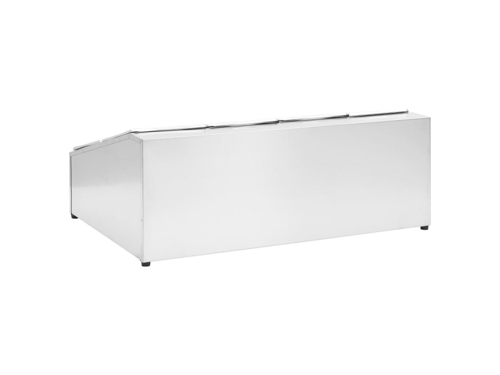 Tato nerez nástavba je vhodná do myčky a snadno se čistí. Protiskluzové gumové nožičky zaručují stabilitu nástavby a chrání pracovní povrch před poškrábáním. Salátový bar obsahuje 8 GN 1/6 nádob, které lze vyjmout pro snadné plnění a vyprazdňování. Nástavba je vybavená také odpovídajícími víky, aby uložené potraviny zůstaly čerstvé, bezpečné a bez škůdců.