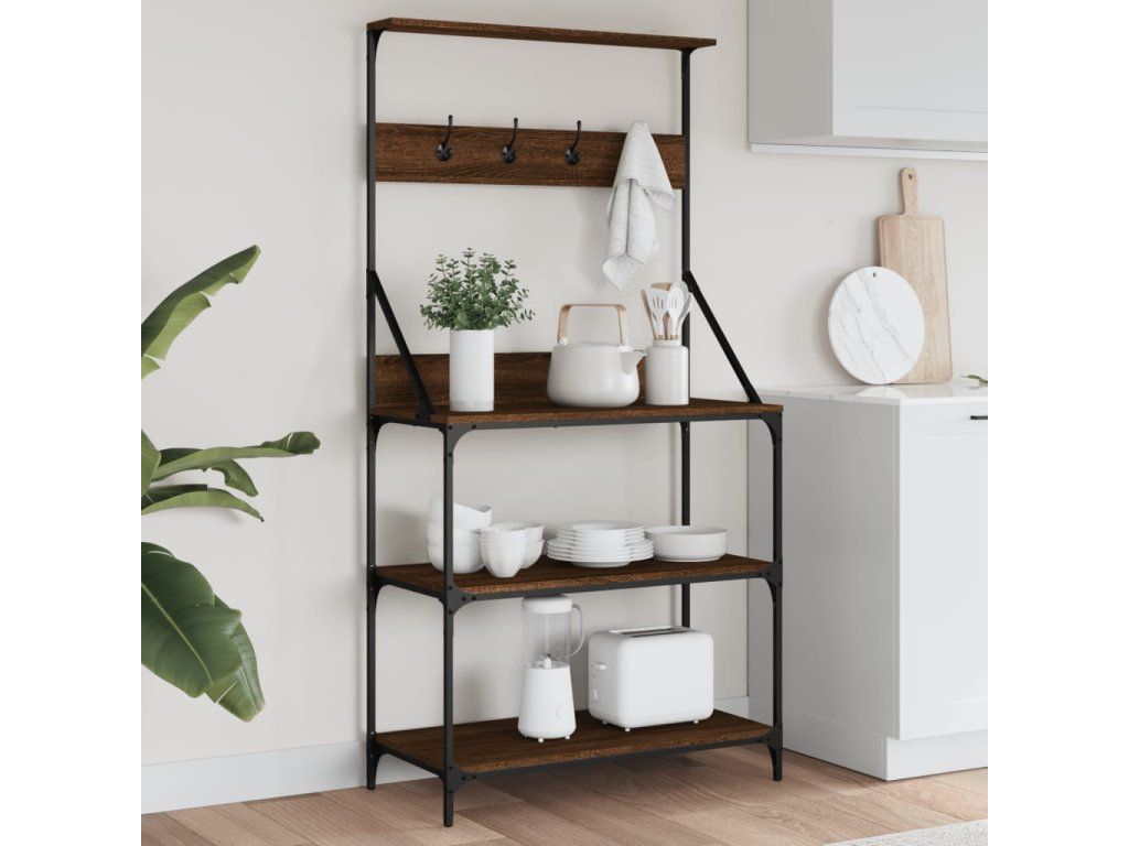 Pekařský regál s háčky 4patrový hnědý dub kompozitní dřevo 838962