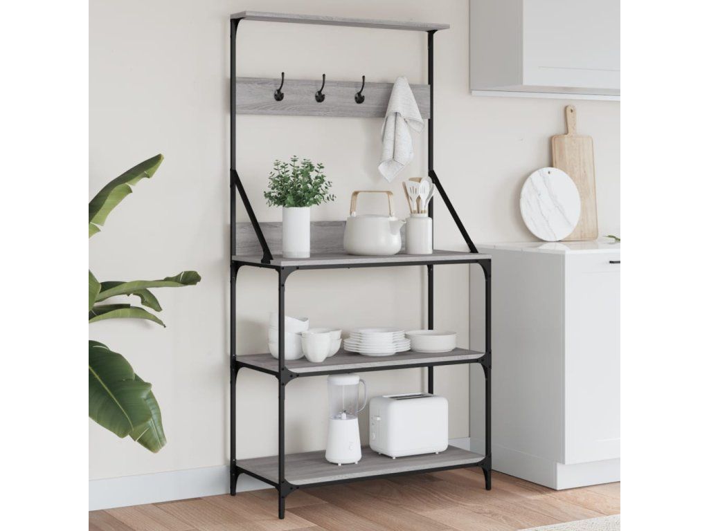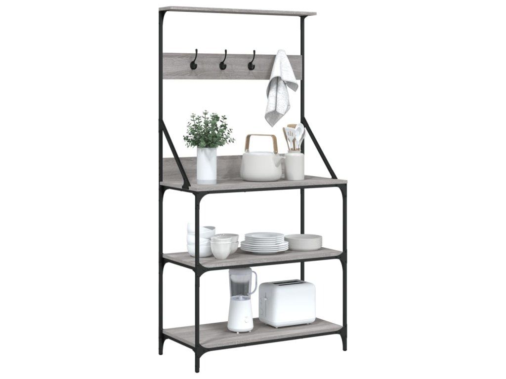 Pekařský regál s háčky 4patrový šedý sonoma kompozitní dřevo 838961