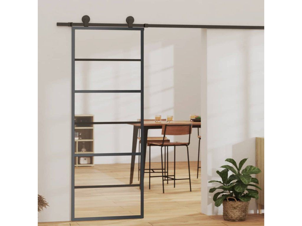 Posuvné dveře ESG sklo a hliník 76 x 205 cm černé 151014