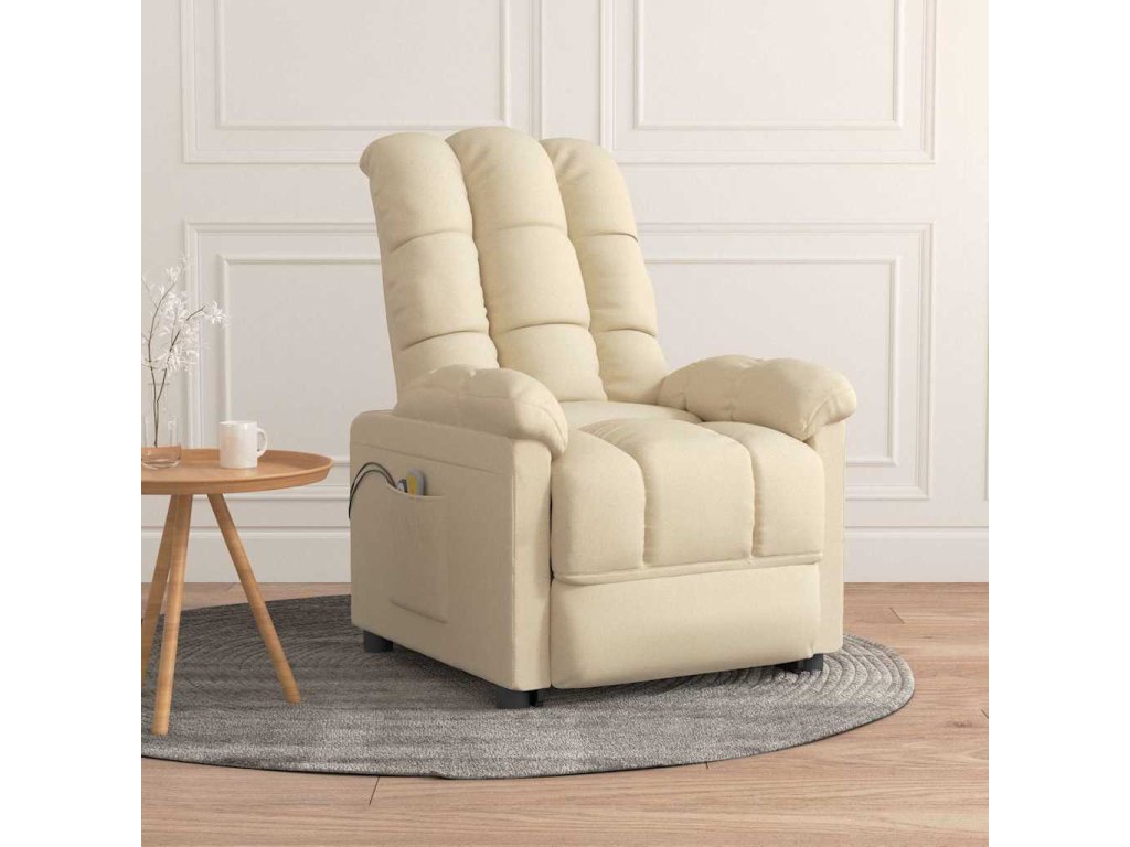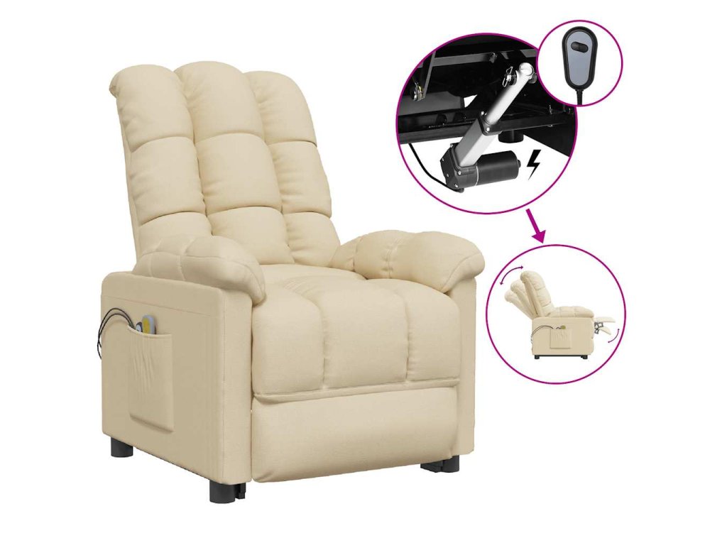 Elektrické masážní křeslo krémové textil 3073767