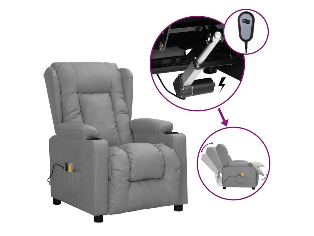 Elektrické masážní křeslo šedé umělá kůže 3098812