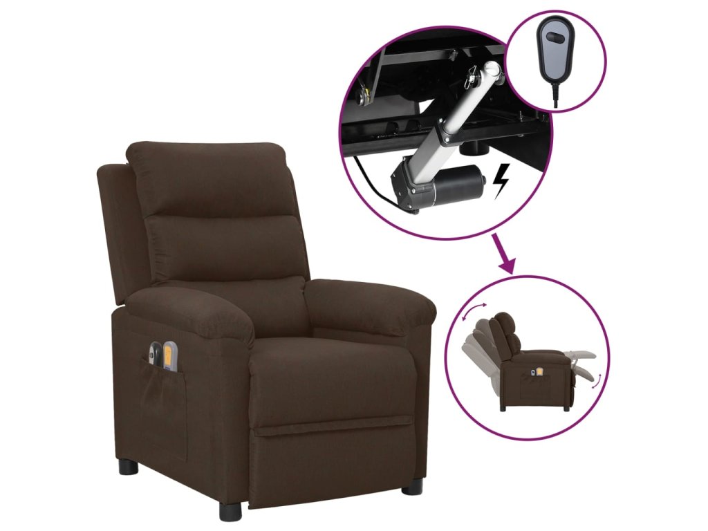 Elektrické masážní křeslo tmavě hnědé textil 3098980