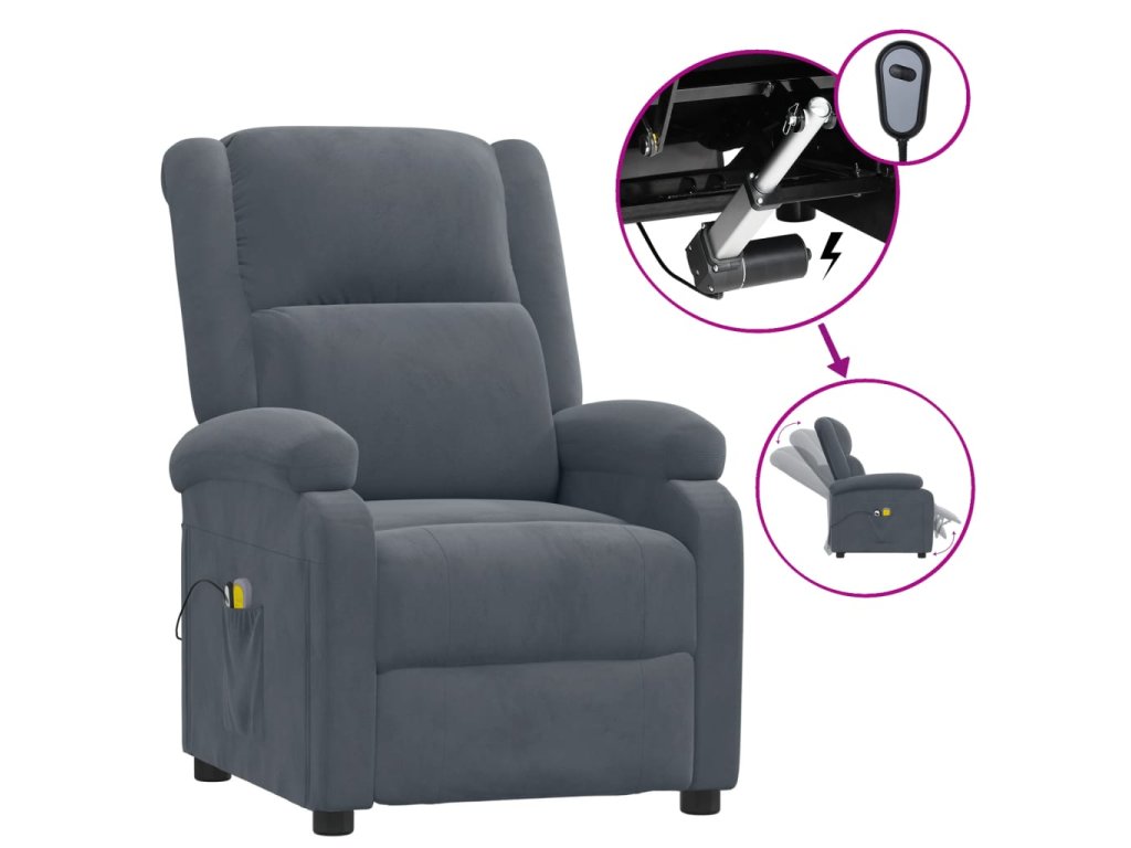 Elektrické masážní křeslo tmavě šedé samet 3098405