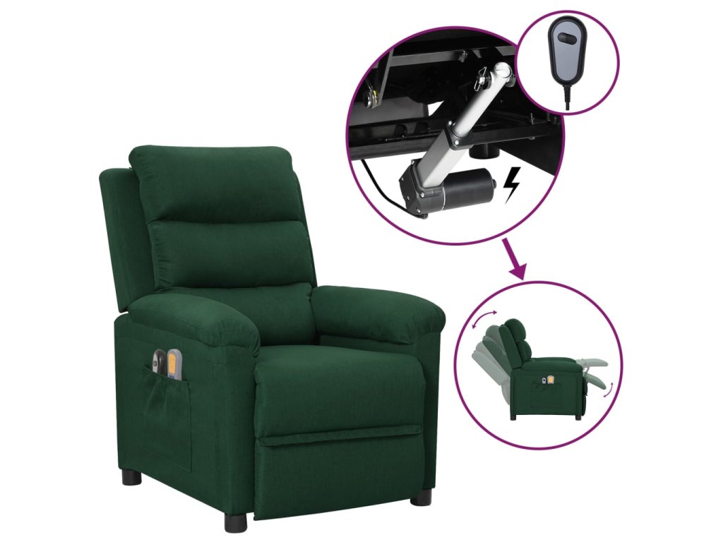 Elektrické masážní křeslo tmavě zelené textil 3098981