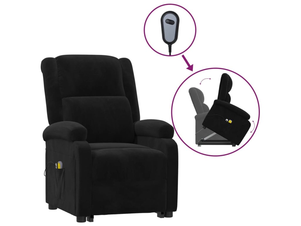 Zvedací masážní křeslo černé samet 3124842