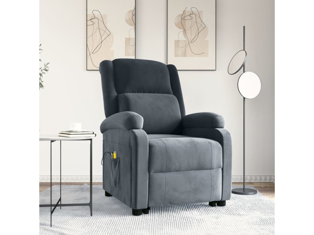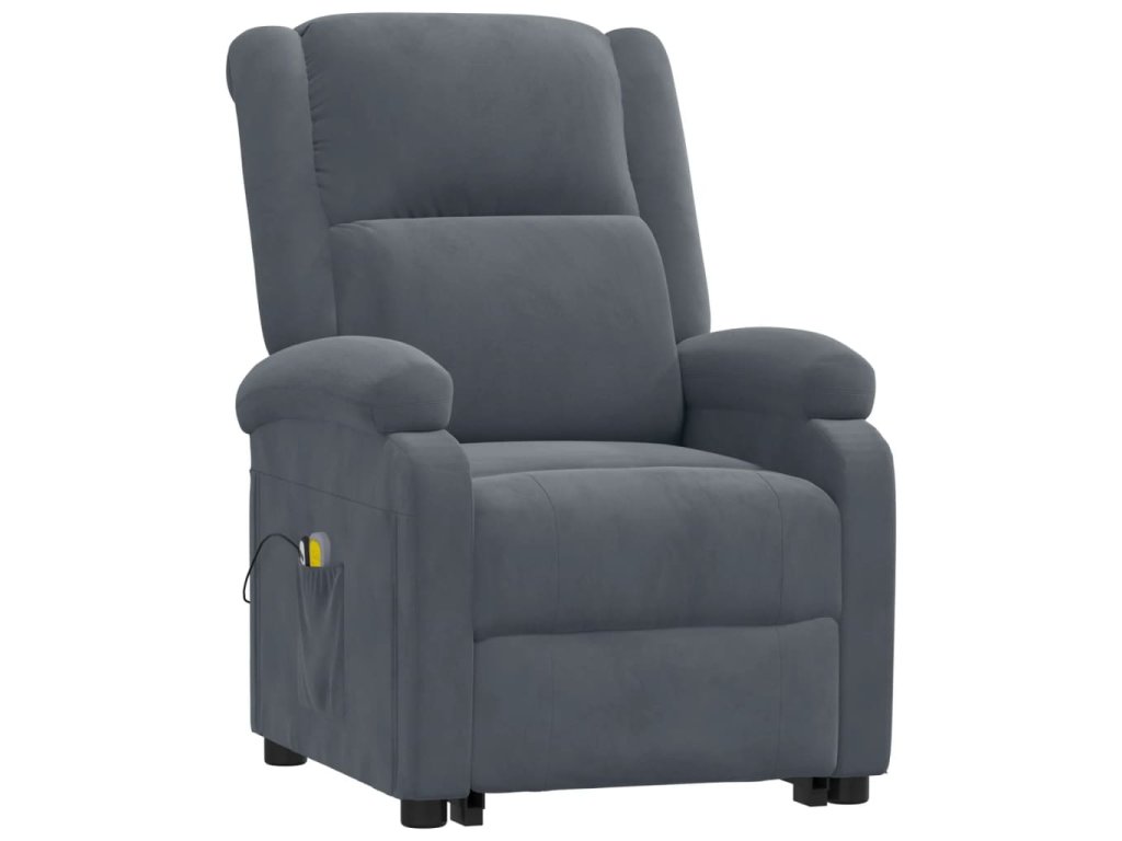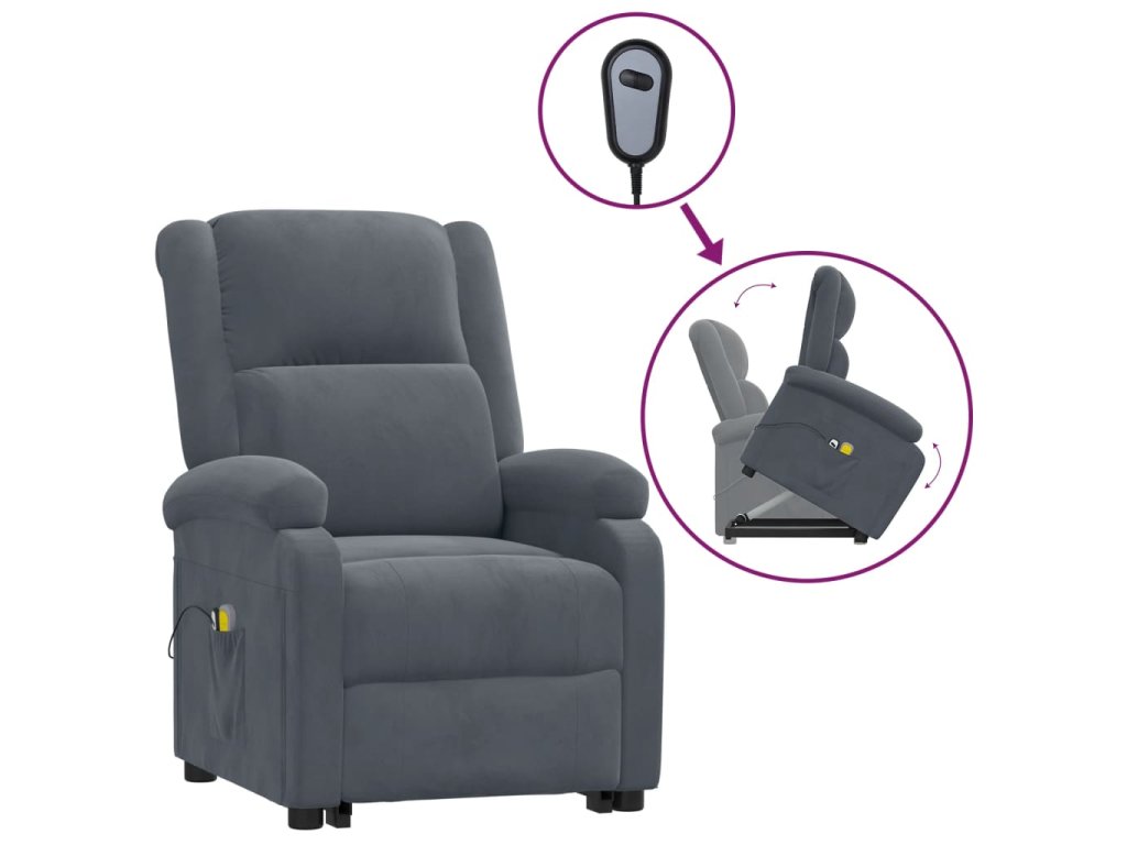 Zvedací masážní křeslo tmavě šedé samet 3124837