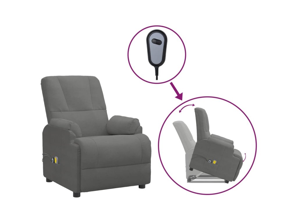 Zvedací masážní křeslo tmavě šedé umělá semišová kůže 3093186