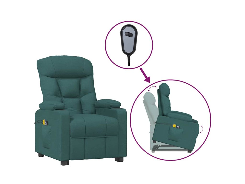 Zvedací masážní křeslo tmavě zelené textil 3093473