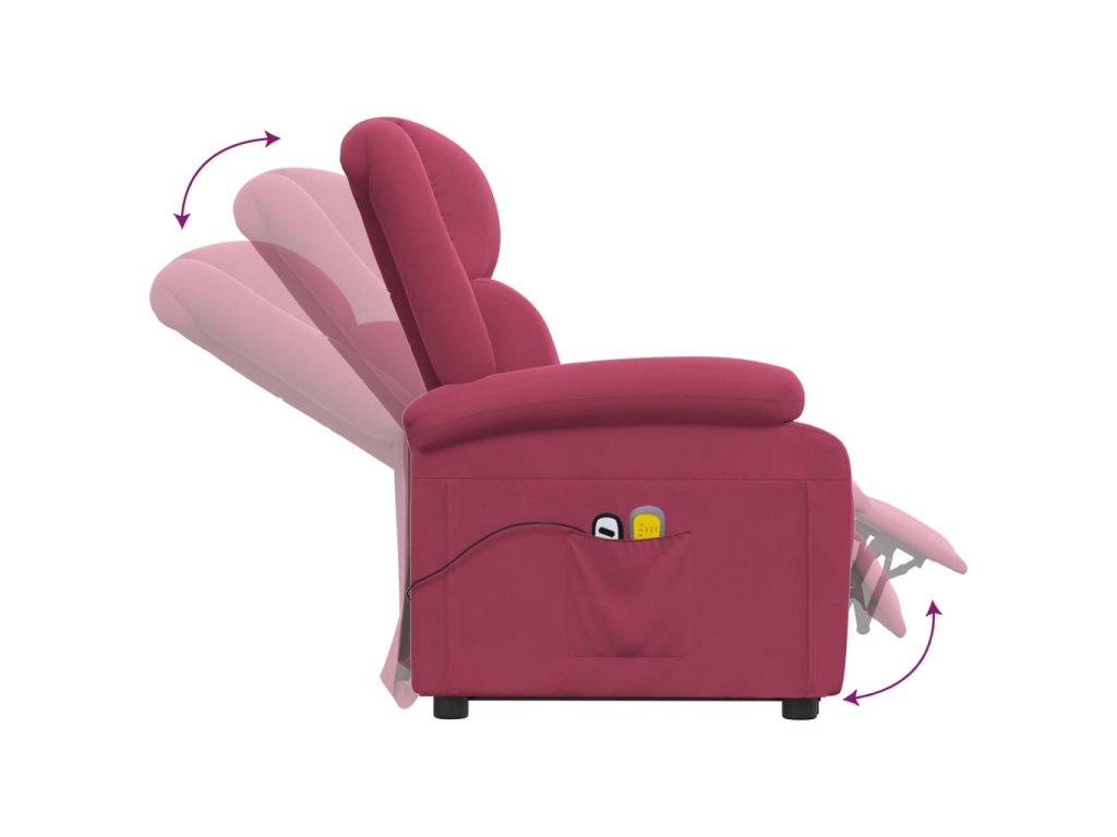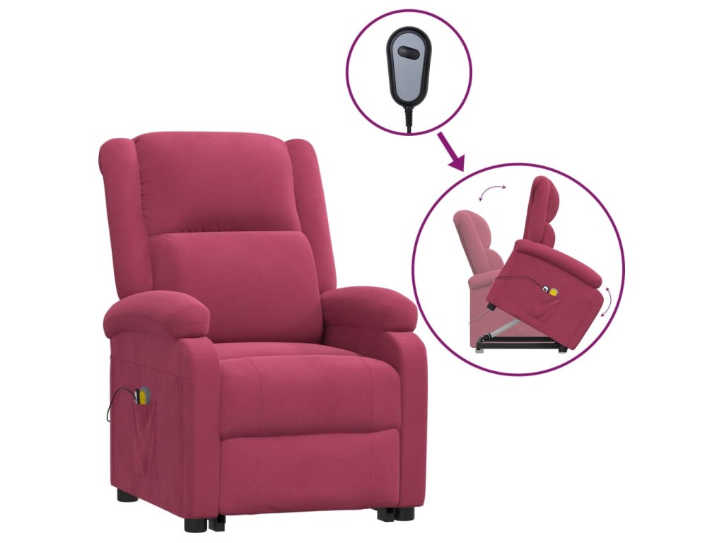 Zvedací masážní křeslo vínové samet 3124841