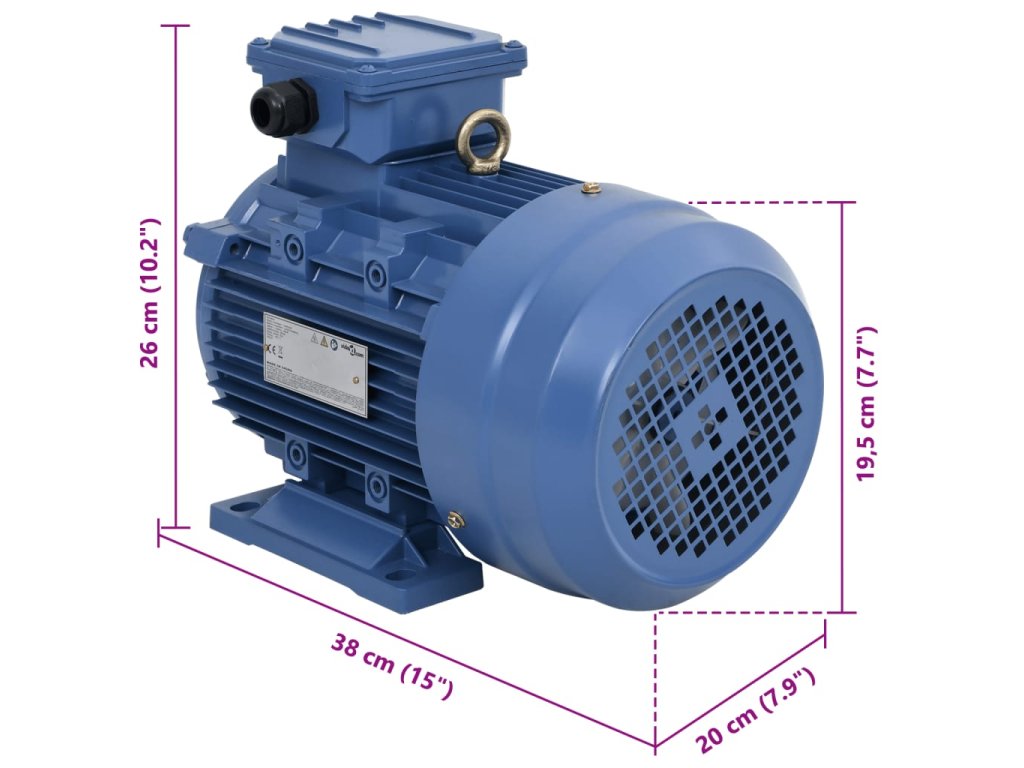 Asynchronní plášť motoru z odolného hliníku je robustní a spolehlivý. Standardní motor má stupeň krytí IP44, který zabrání hromadění škodlivého prachu a zcela zamezí kontaktu motoru s externími podmínkami. Je také možné ho omýt vodou bez rizika poškození. Je navržený pro vysokou výkonnost s maximální rychlostí 2 840 ot./min a 24mm hřídelí s vysokou tvrdostí. Velký ventilátor na jednom konci chladí motor během hodin provozu, a to i v prašném nebo vlhkém prostředí, což snižuje náklady na energii a provozní teplotu a prodlužuje životnost vinutí.