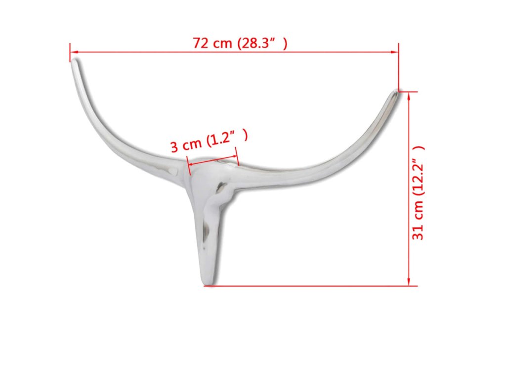 Tato býčíhlava, vyrobená z vysoce kvalitního hliníku s leštěným povrchem, má robustní strukturu. Je poměrně velká: její šířka je 72 cm a výška 31 cm. Proměňte svou stěnu v dominantu pokoje pomocí této odborně vyrobené dekorace. Dá se snadno nainstalovat.