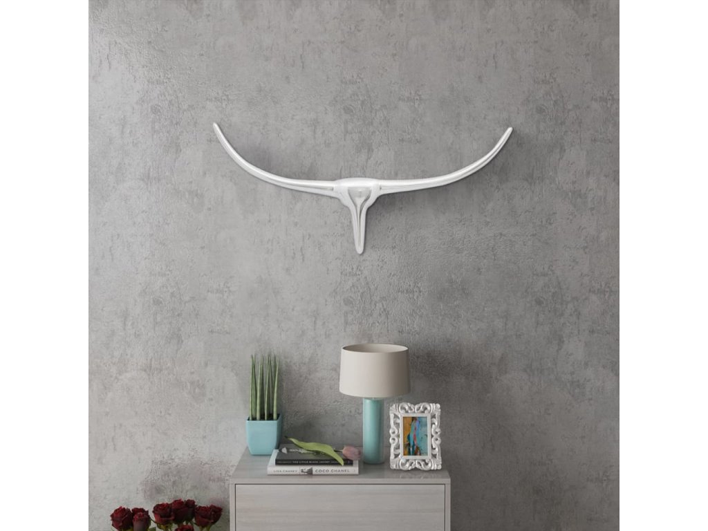 Nástěnná hliníková býčí hlava, dekorace, stříbrná barva 72 cm 242336