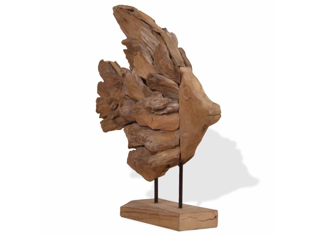 Tato výrazná teaková socha ryby se stane ústředním bodem vašeho obývacího pokoje.