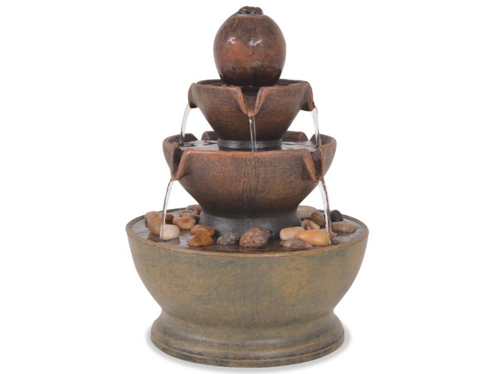 Z fontánky tryská hned několik proudů vody. Jejich zvuk vytváří klidnou, meditativní atmosféru, která je ideální pro relaxaci. Součástí balení je i kvalitní pumpa, díky které je fontána bezpečná a správně funguje.
