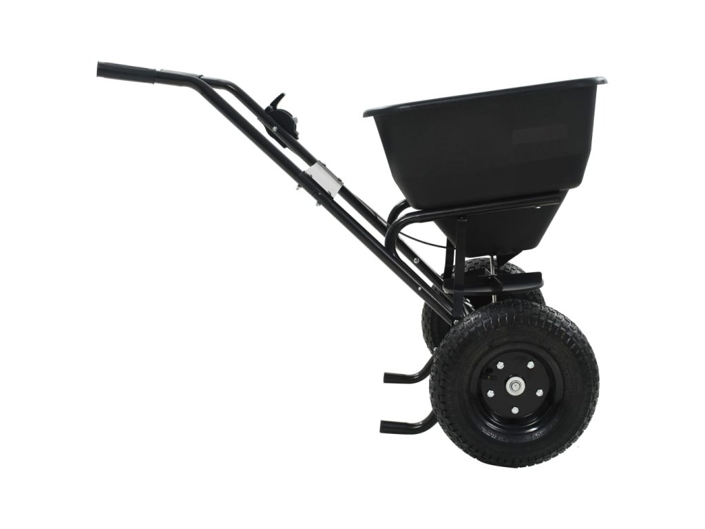 Robustní rozmetadlo má trubkový ocelový rám, který je odolný vůči korozi a jen tak se nepoškodí. Disponuje rovněž velkou násypkou z PVC, kterou můžete naplnit solí, semeny či hnojivem. Zahradní rozmetadlo je navrženo tak, aby přesně trefilo rovnováhu mezi rozprašováním příliš velkého či příliš malého množství travního osiva, ani moc hustě ani moc řídce, tak, aby umožnilo zdravý růst trávy. Pomáhá také rovnoměrně roznášet trávníkové hnojivo, aby se snížilo riziko spálení. Rozmetadlo na trávník je dodáváno s kabelově ovládaným ovladačem na rukojeti, díky kterému můžete snadno nastavovat rychlost rozptylu pro větší účinnost. Součástí designu jsou dvě velká široká kola a dlouhá rukojeť, jež vám umožní s tímto nástrojem snadno manipulovat ve vaší zahradě.