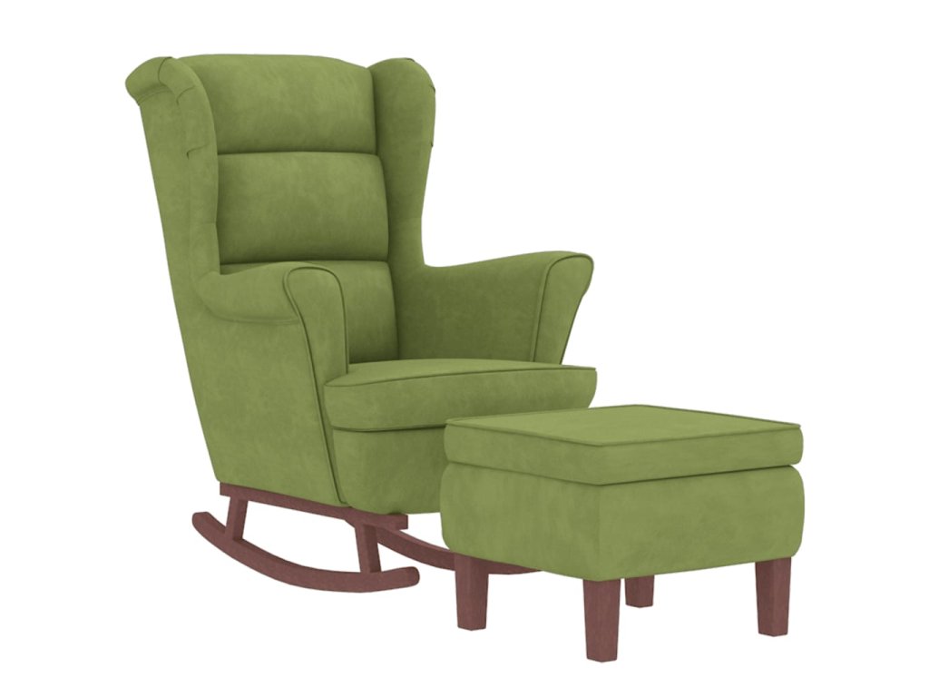 Houpací křeslo s opěradlem, světle zelený samet a masivní dřevo 3121233