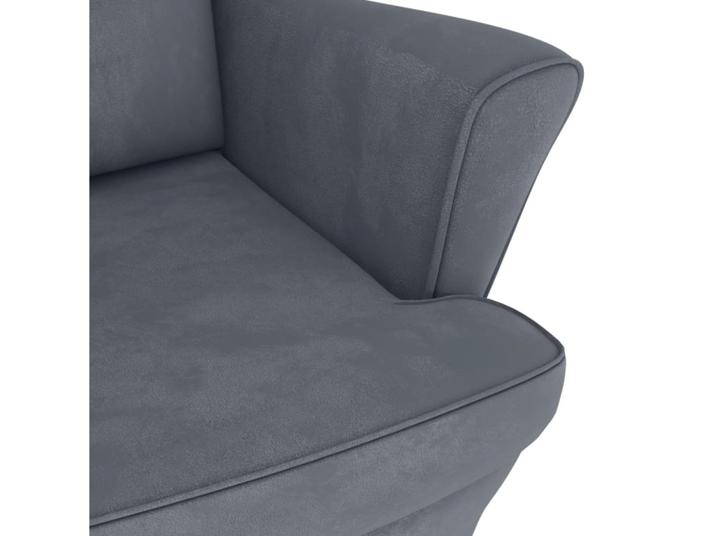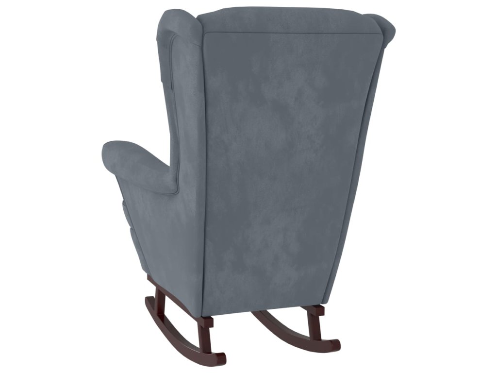 Houpací křeslo s opěradlem, tmavě šedý samet a masivní dřevo 329364