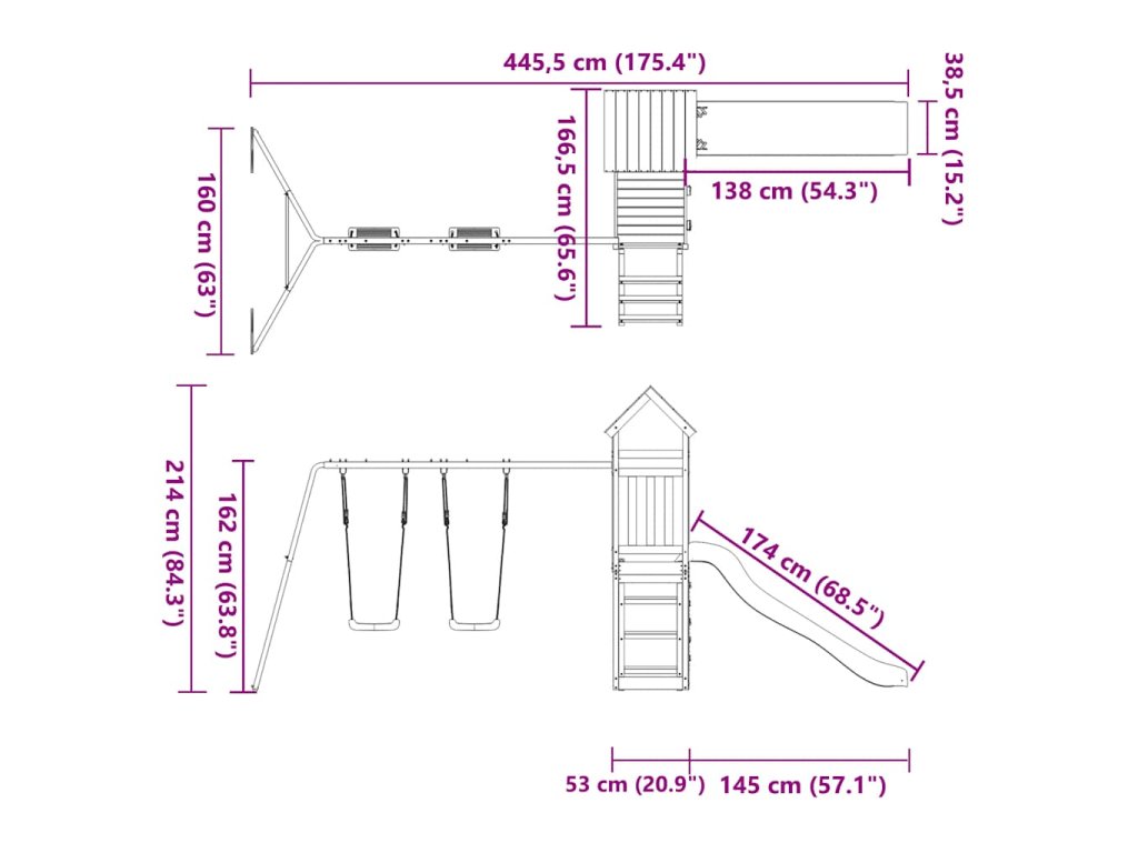 - Multifunkční herní centrum: Věž má plošinu ve výšce 90 cm a vyniká zvlněnou skluzavkou, dvěma houpačkami, žebříkem, lezeckou stěnou a pískovištěm. A navíc si mohou pozvat kamarády a užívat si zábavu společně.