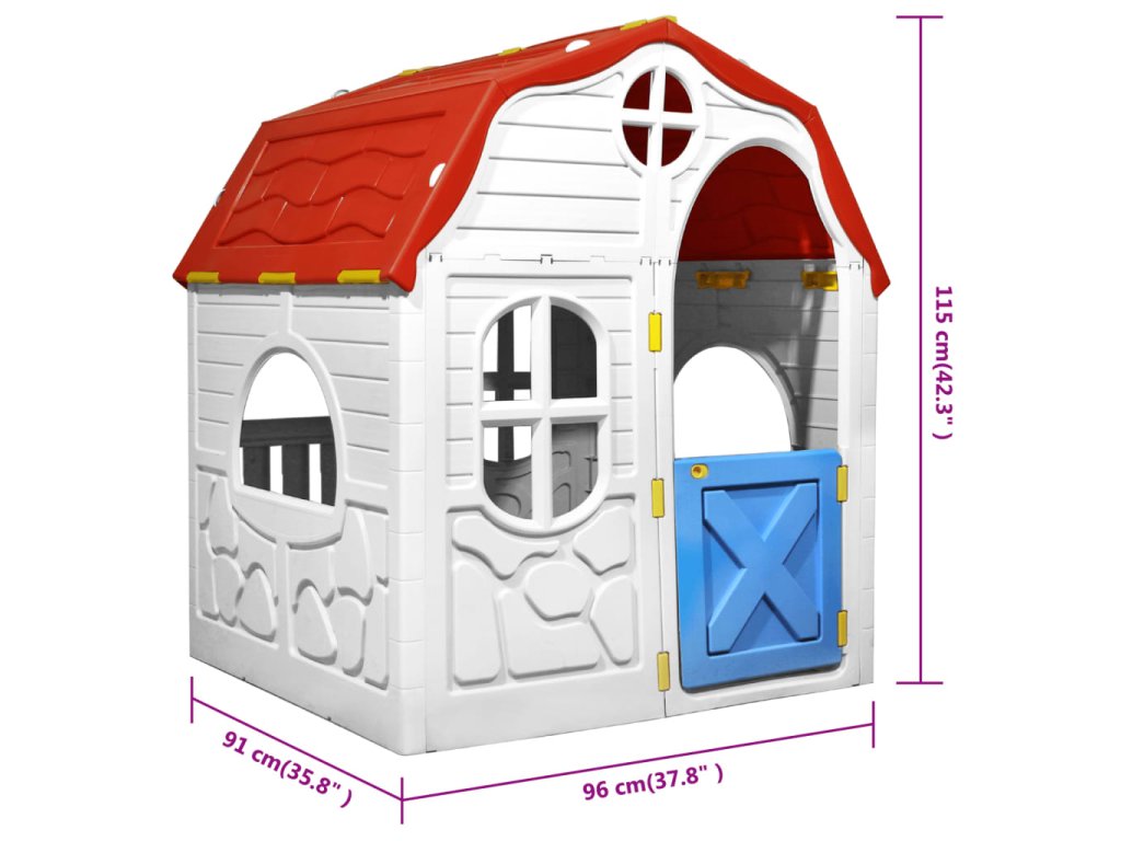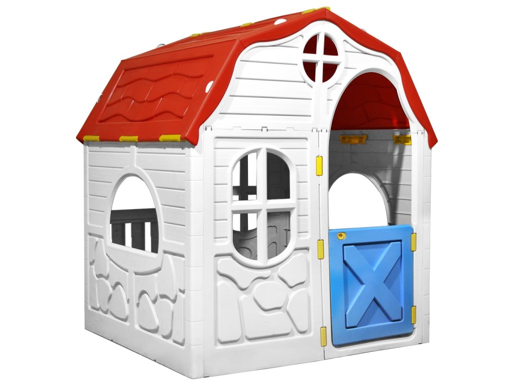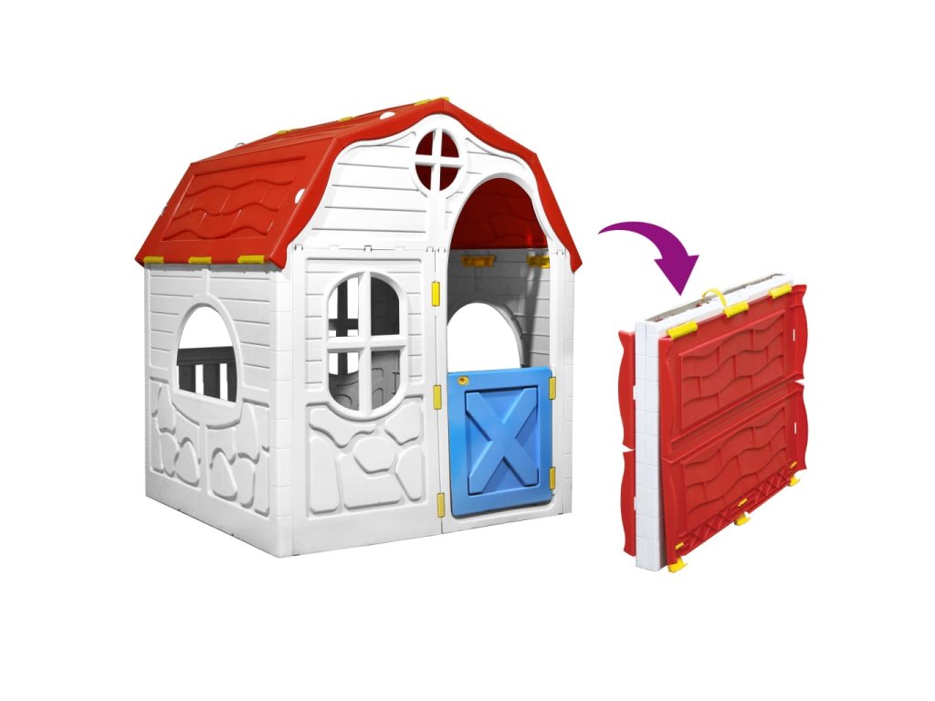Skládací dětský domeček s funkčními dveřmi a okny 92577