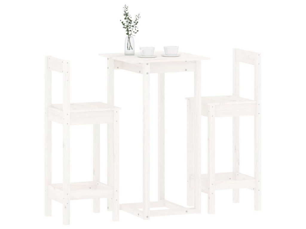 3 dílný barový set bílý masivní borové dřevo 3124733