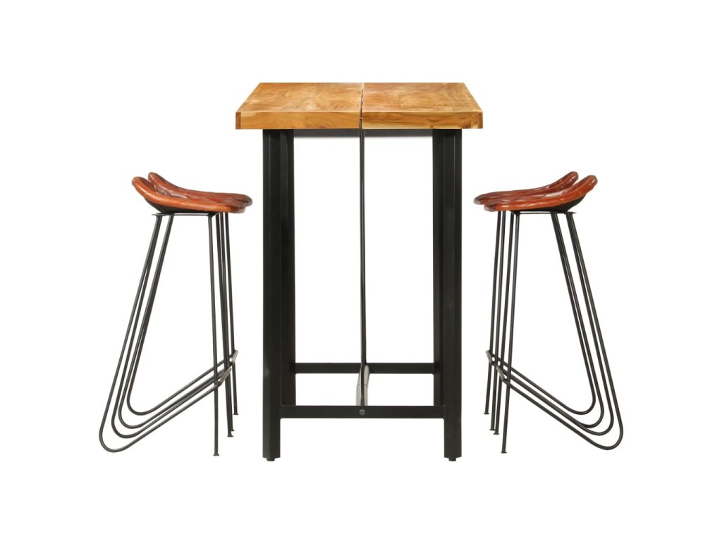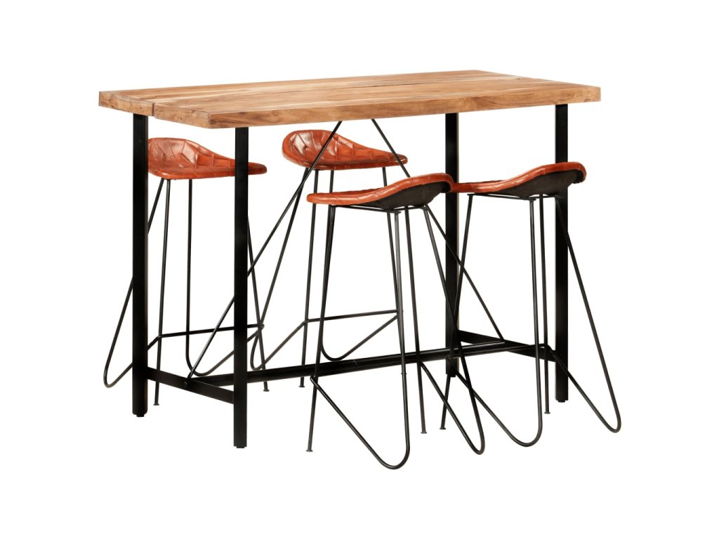 5dílný barový set masivní dřevo a pravá kůže 278764