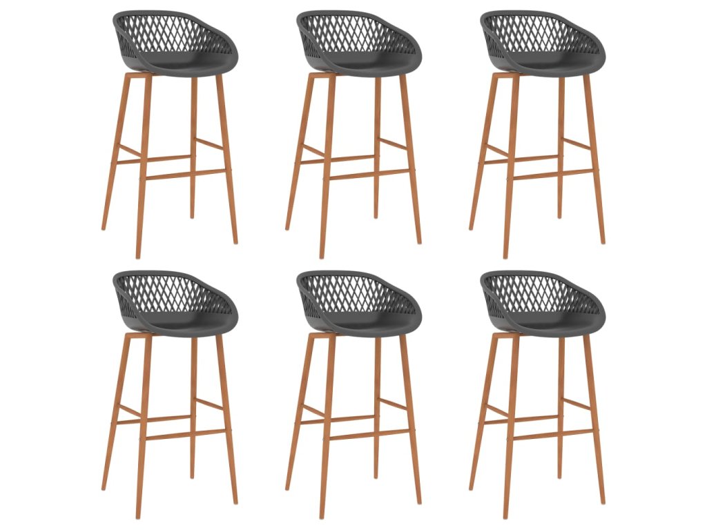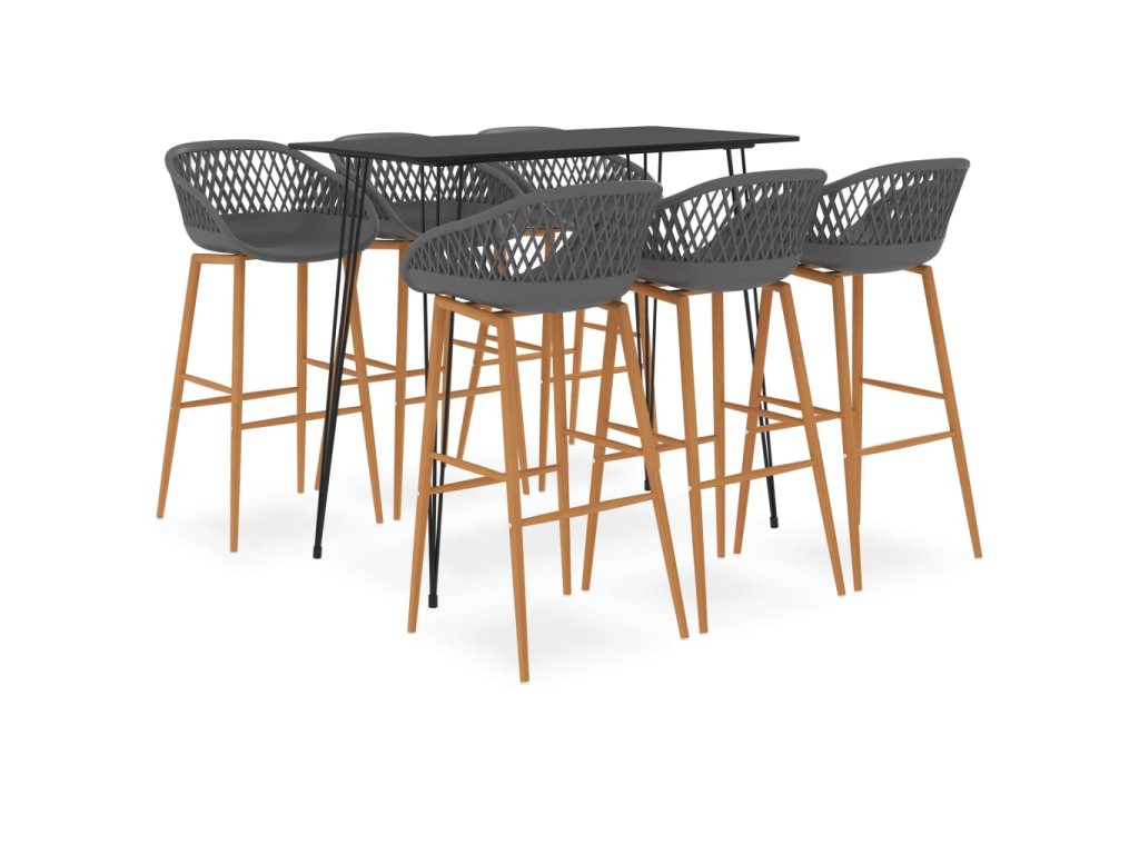 Stolní deska je zhotovená z MDF, takže se snadno čistí. Práškově lakovaný kovový rám přispívá k celkové stabilitě a odolnosti barového stolu. Barové stoličky mají ergonomicky tvarované sedáky s integrovaným nízkým opěradlem v síťovaném provedení. Jelikož jsou vyrobené z robustního PP a podepírají je pevné kovové nohy s termotransferovým potiskem v imitaci dřeva, jsou mimořádně bytelné a dlouho vám vydrží.